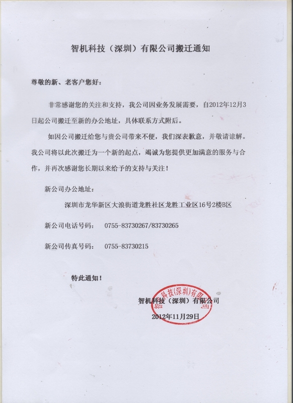 智機科技(深圳)有限公司搬遷通知